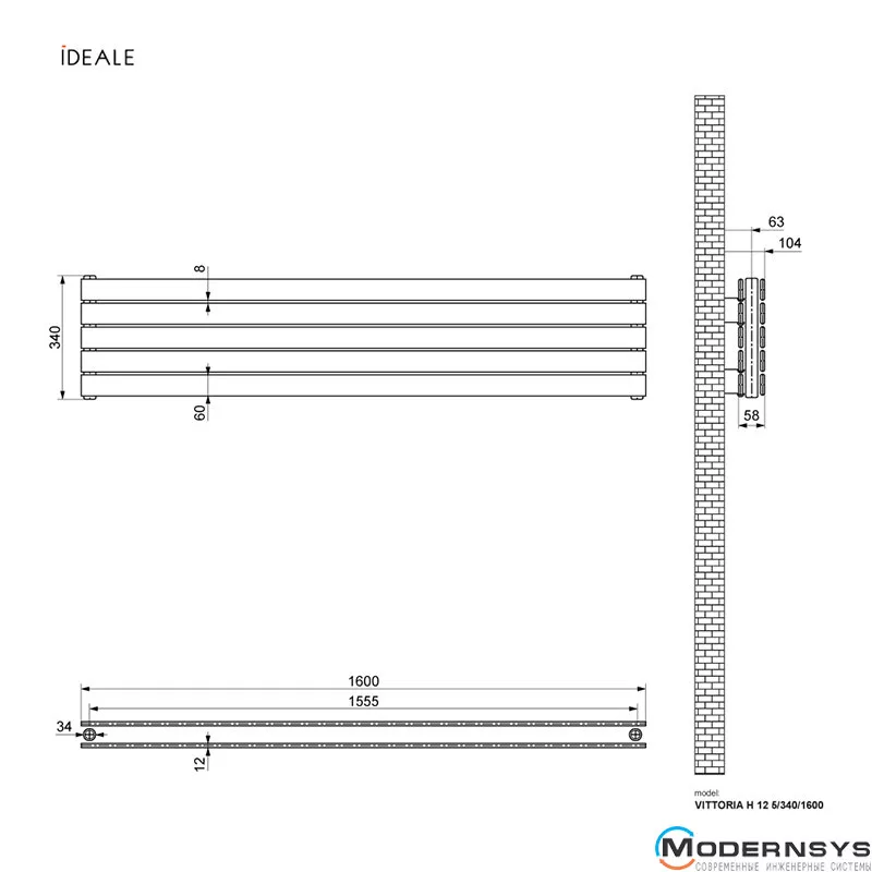 Технические характеристики: Радиатор дизайнерский Ideale Vittoria H 12 5/340/1600 черный