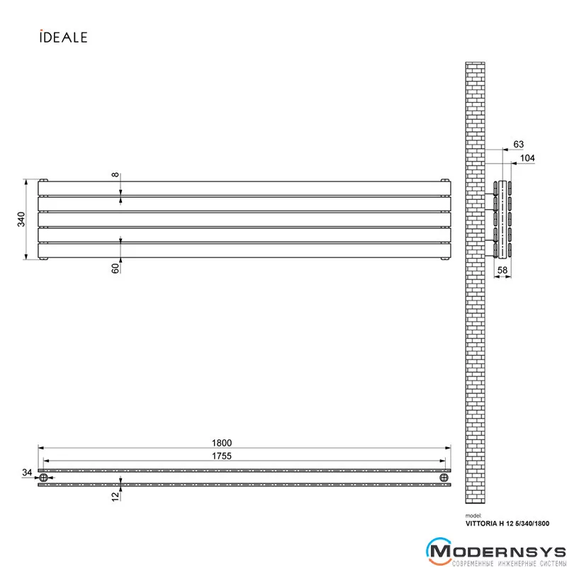 Технические характеристики: Радиатор дизайнерский Ideale Vittoria H 12 5/340/1800 антрацит