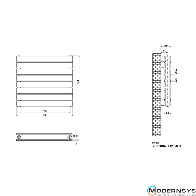 Технические характеристики: Радиатор дизайнерский Ideale Vittoria H 12 8/544/600 белый