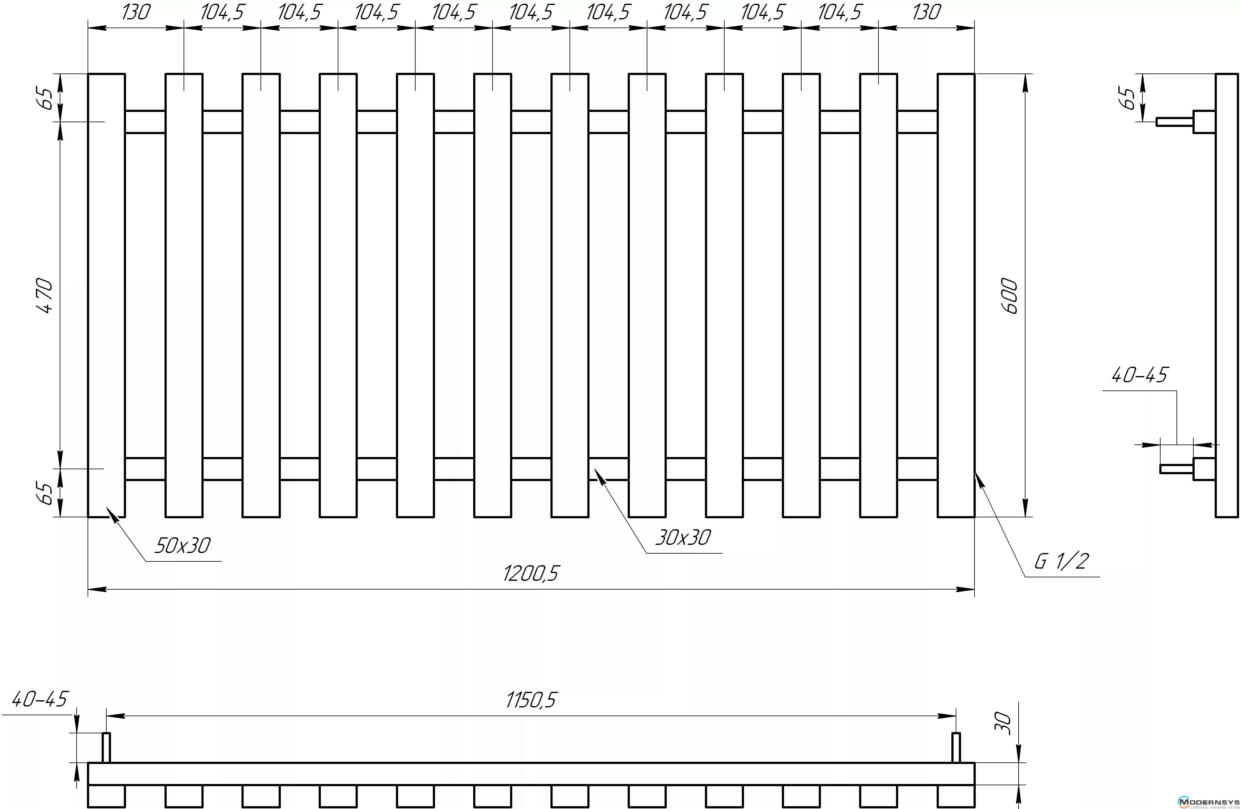 Технические характеристики: Радиатор Genesis-Aqua (Генезис Аква) BATTERIA 600x1200 черный