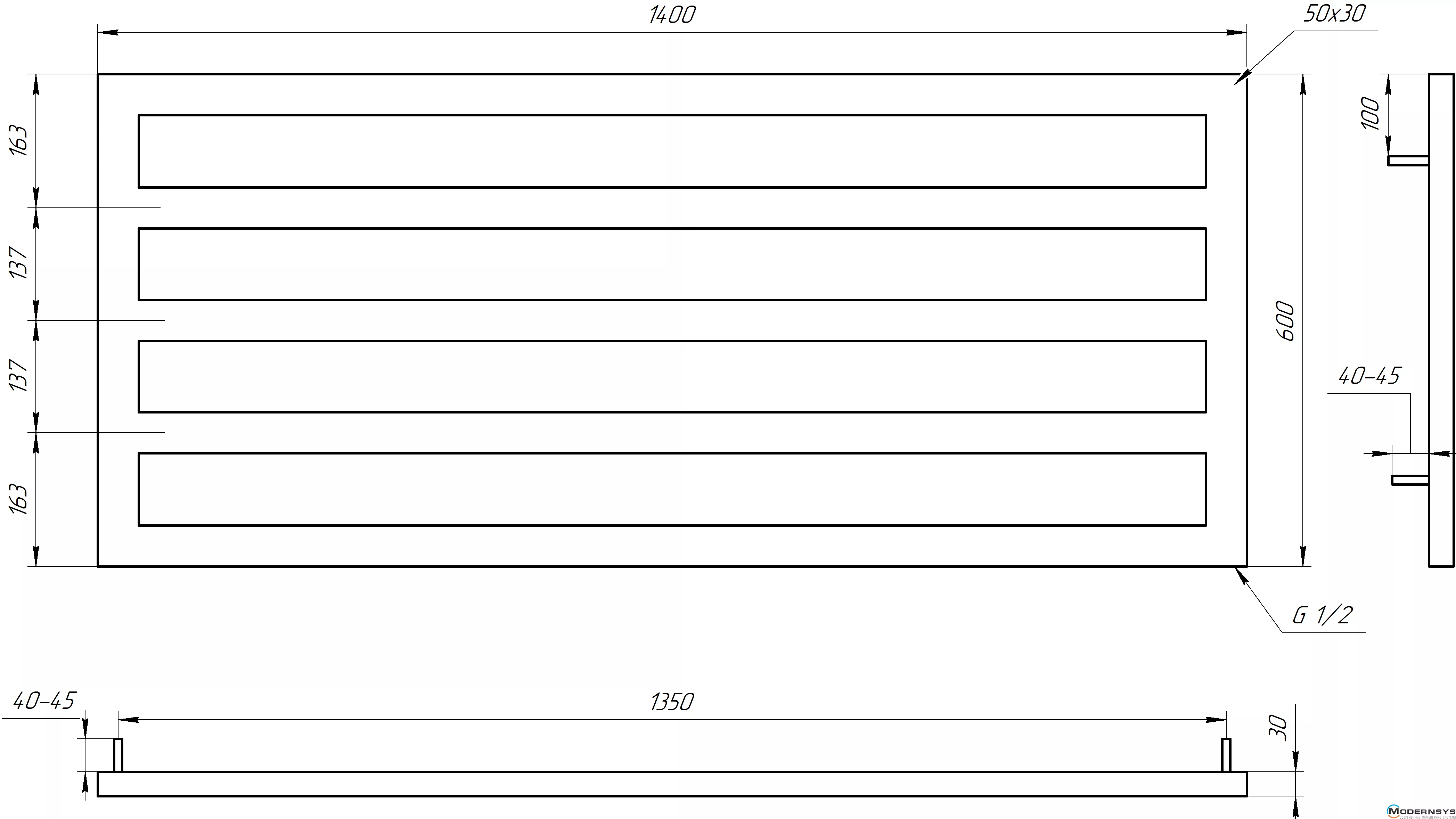 Технические характеристики: Радиатор Genesis-Aqua (Генезис Аква) FENELI 600x1400 белый