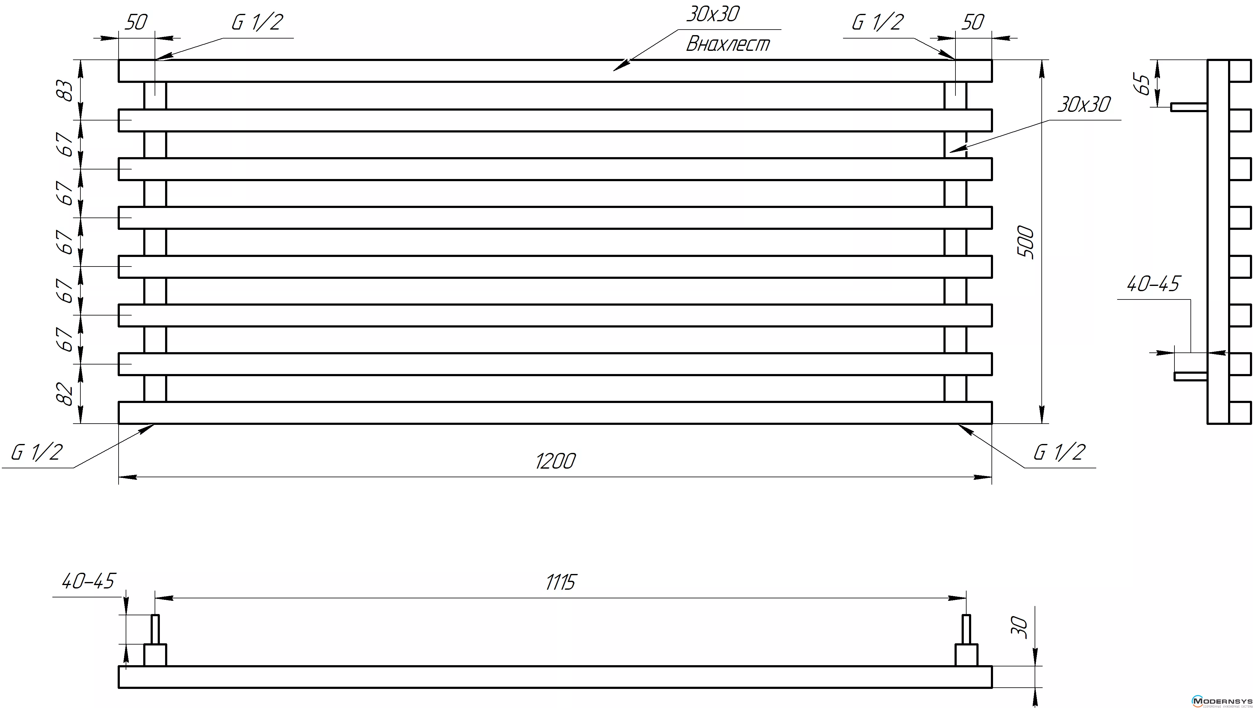 Технические характеристики: Радиатор Genesis-Aqua (Генезис Аква) FORTUNA 500x1200 графит
