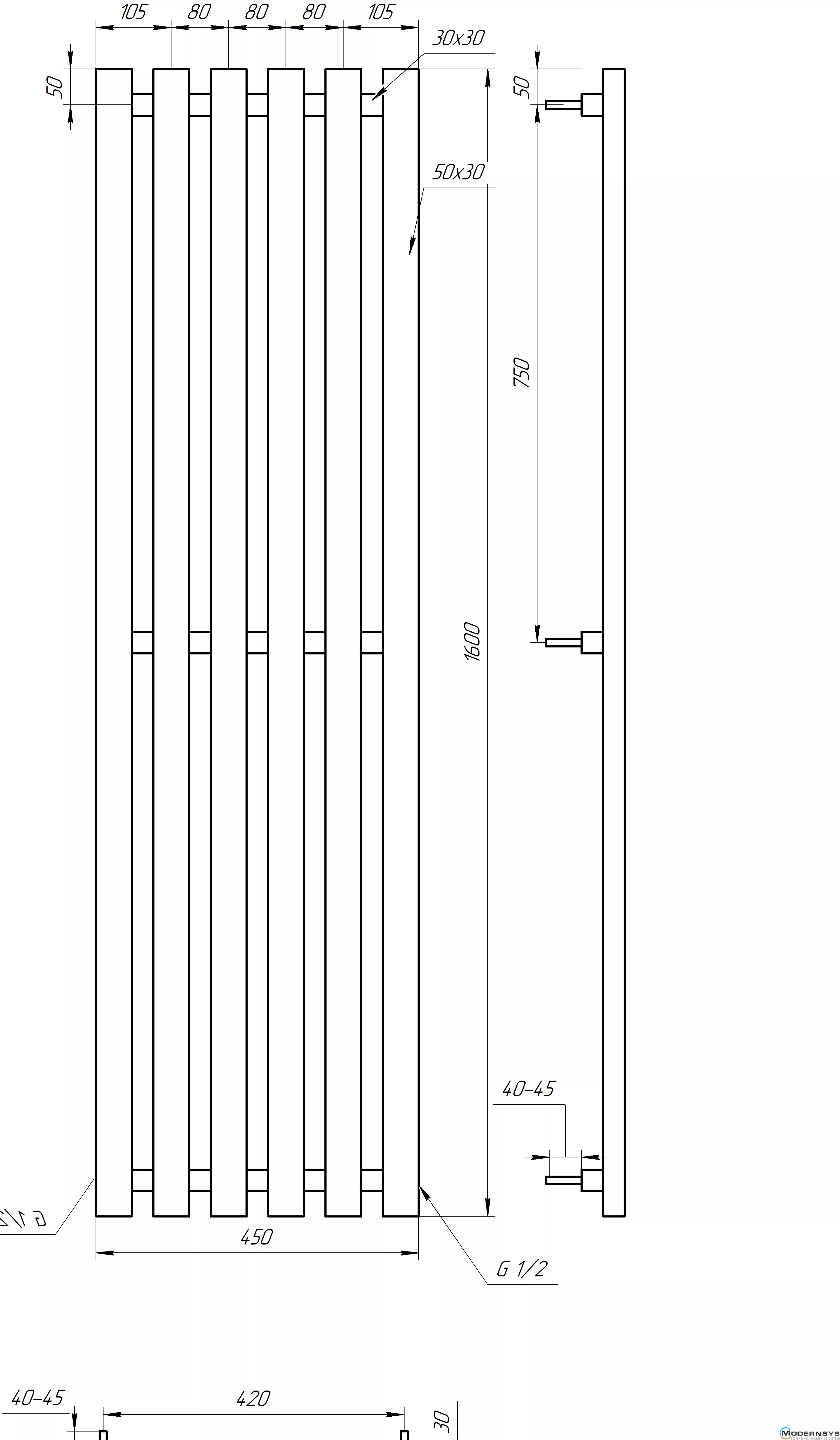 Преимущество такого полотенцесушителя в том что он является батареей и теплоотдача у него в разы выше чем у полотенцесушителей с электрическим сухим тэном, то есть наш Радиатор отопления может отопить помещение.