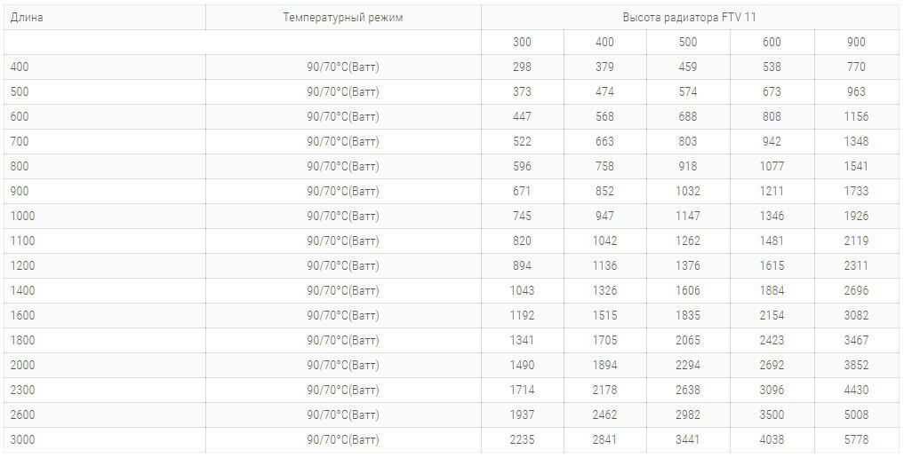 ftv11 Таблица харакактеристик стального радиатора KERMI FTV 11-типа