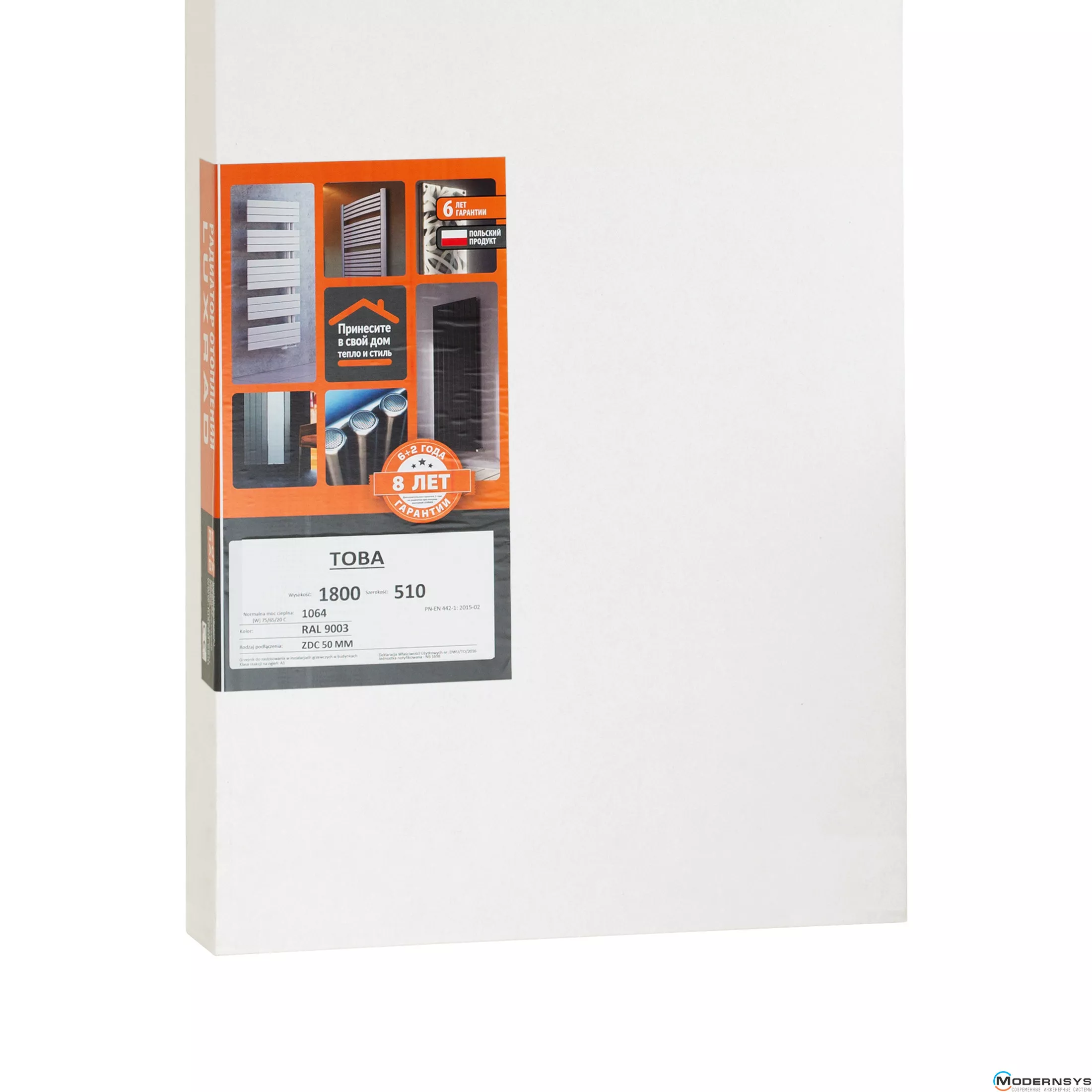Радиатор Luxrad Toba 1800х510х90 (1064 Вт) подключение нижнее центр белый RAL9003 (TOB18005109003ZDC)