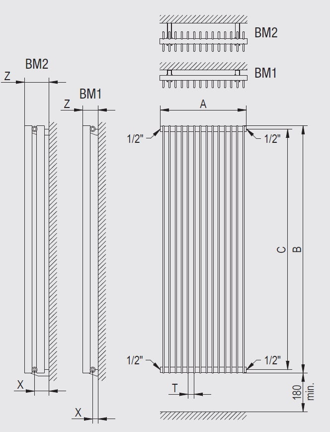 Описание: Радиатор Betatherm (Бетатерм) Metrum BM6 1180-30 1800x465x92mm Ral 9016M
