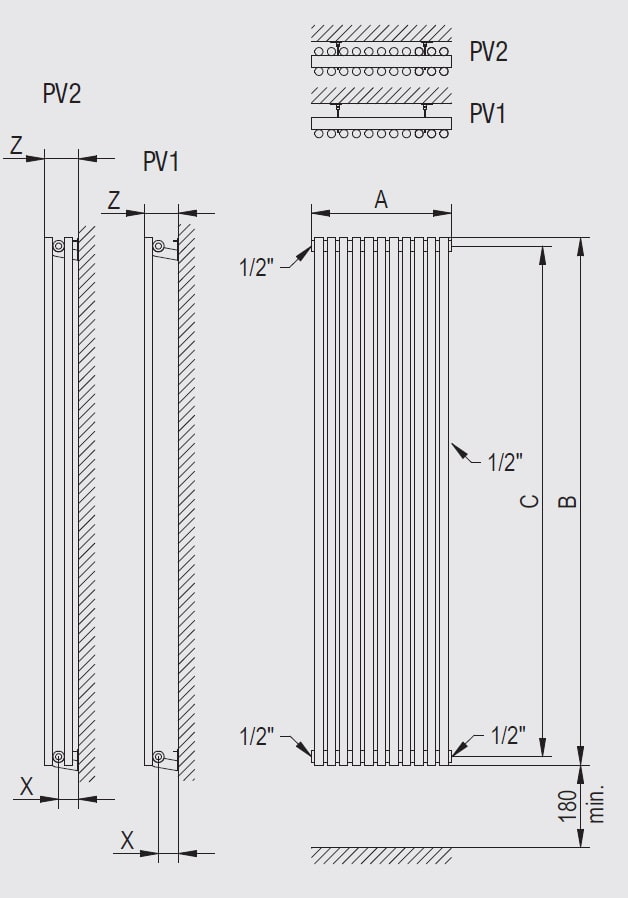 Оригинальный современный трубчатый радиатор Betatherm Praktikum 1 2000x501 с оригинальным дизайном и высотой 2 метра.