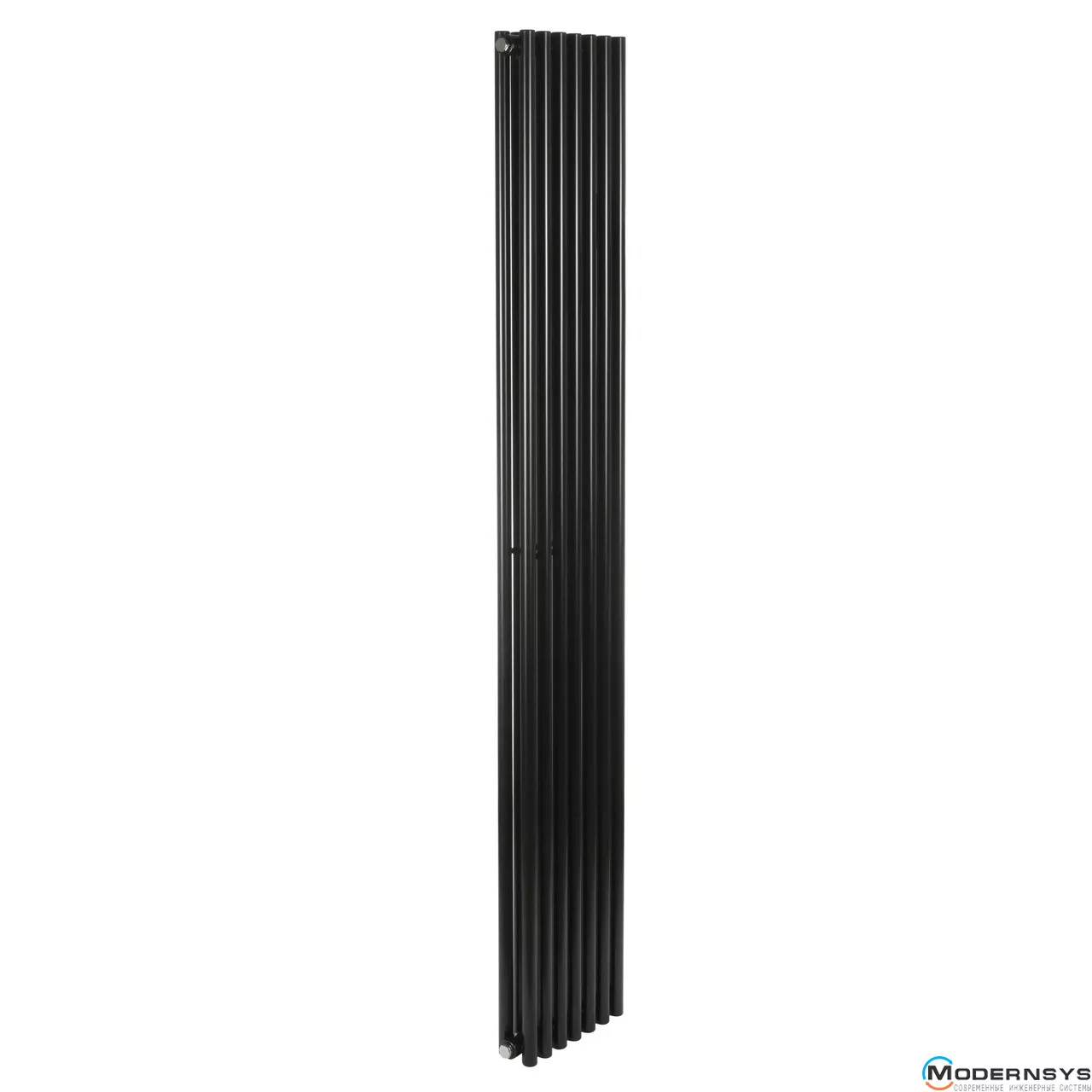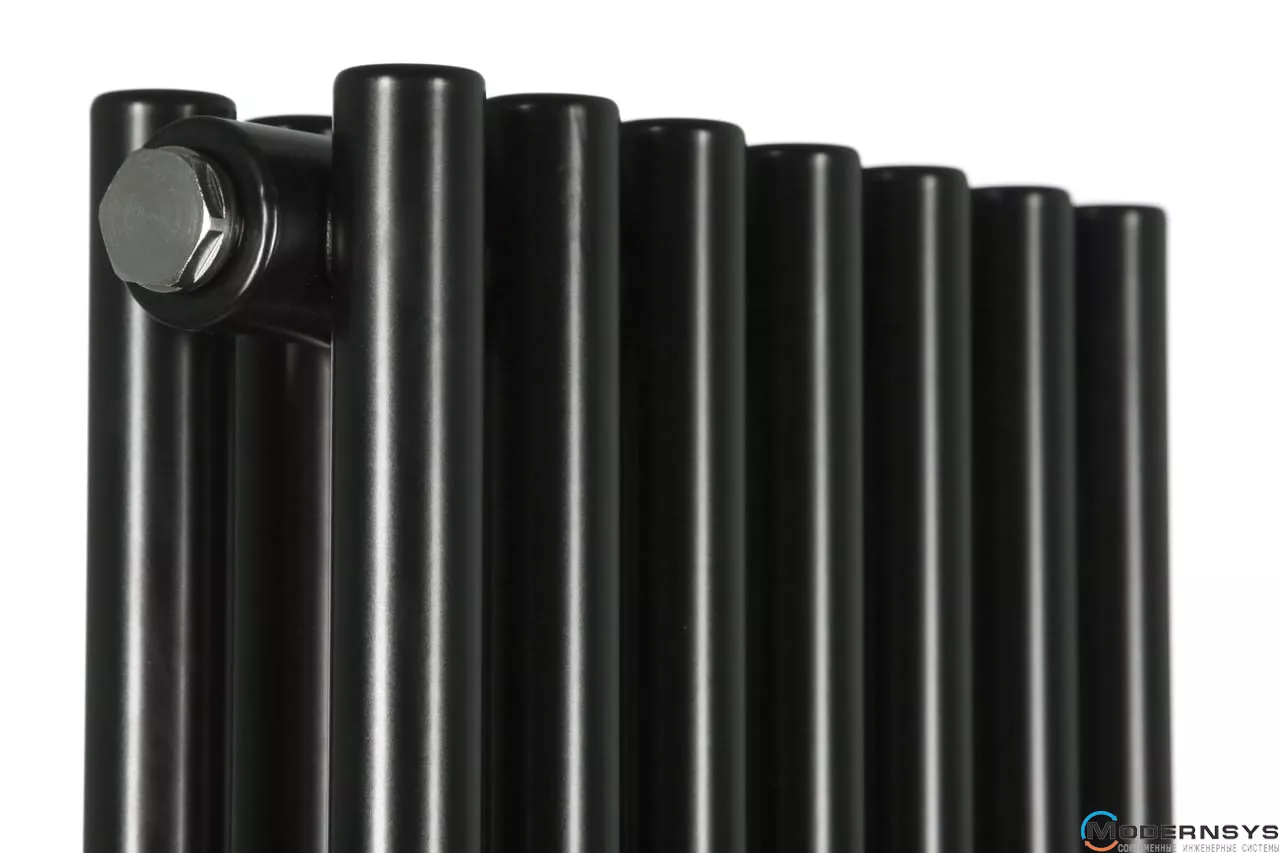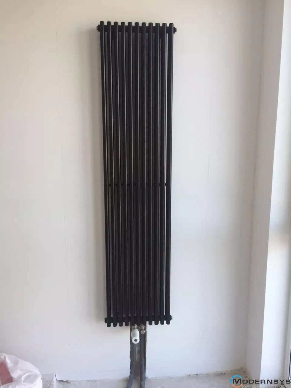 Внешне изделие состоит из длинных труб с плоскими торцами. Такой дизайн является трендом настоящего времени. Батарея устанавливается вертикально. Материалом для труб служит черная высококачественная сталь.