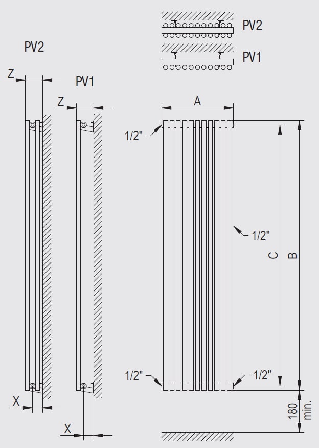 Технические характеристики: Радиатор Betatherm (Бетатерм) Praktikum PV 2050 500*1223 (Черный Ral9005M подк. 88)