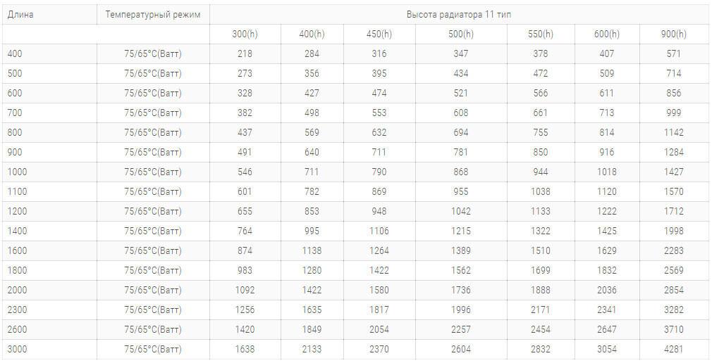 stalnye radiatory purmo s bokovym podklucheniem 11 tipaТаблица характеристик Purmo 11-типа