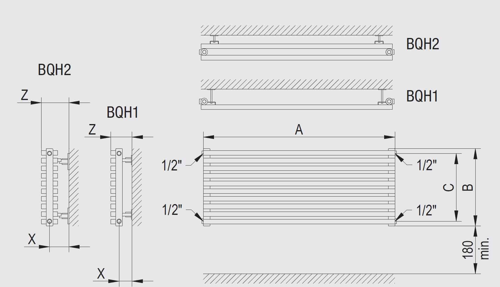 В моделях радиаторов серии Quantum BQH предусмотрены разные способы подключения посредством резьбового соединения.