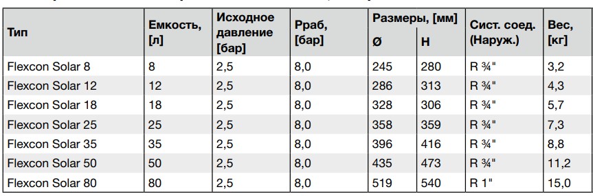 Технические характеристики: Расширительный бак для гелиосистем Flamco (Фламко) Flexcon Solar 8