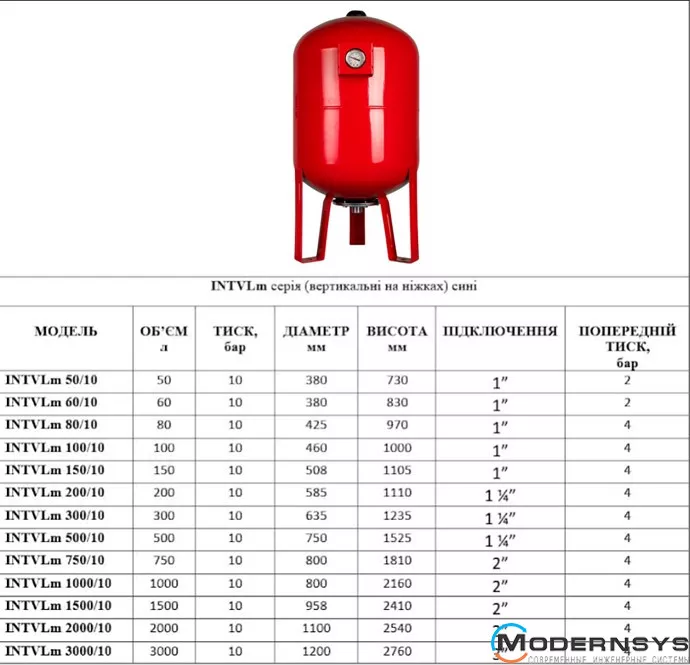 Расширительный бак вертикальный INNOVATECH INTVLm 1000/10 red 00007835535 647 грн