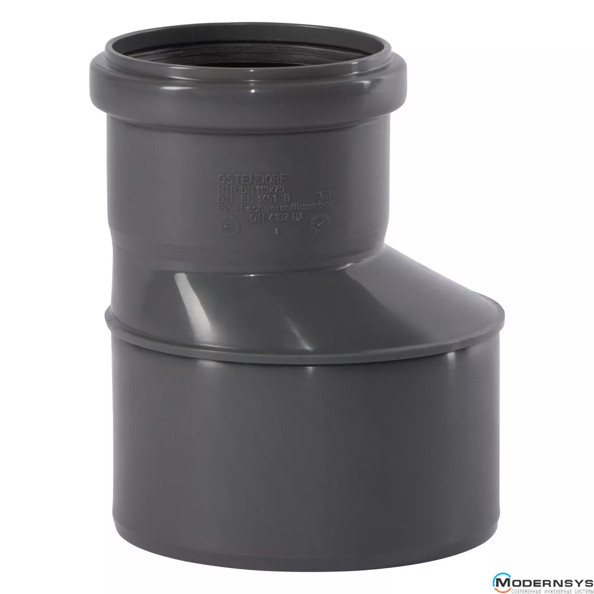 Редукция канализационная Ostendorf HT-Safe внутренняя 110/75, Вариант: Внутренний, Вид канализации: Внутренняя, Тип канализации: Простая, Модификация: 110/75, Исполнение: Для HT-Safe, Цвет: Темно-серый, Диаметр (мм): 100, Материал: Полипропилен PPR, фото Редукция канализационная Ostendorf HT-Safe внутренняя 110/75