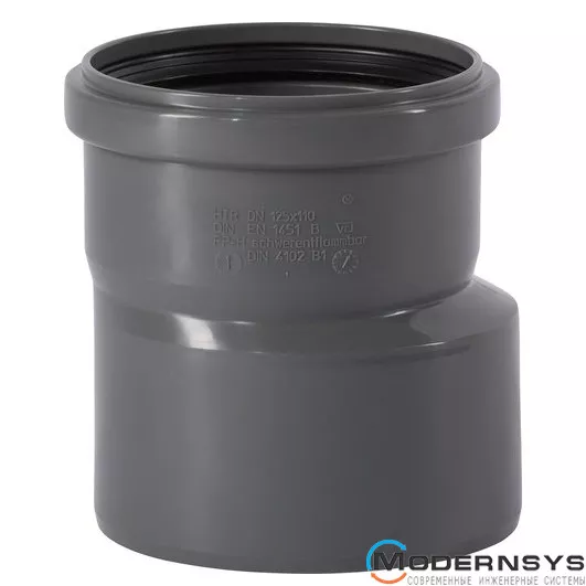Редукция канализационная Ostendorf HT-Safe 125/110, Вариант: Обычная, Вид канализации: Внутренняя, Тип канализации: Простая, Модификация: 125/110, Исполнение: Для HT-Safe, Цвет: Темно-серый, Диаметр (мм): 125, Материал: Полипропилен PPR, фото Редукция канализационная Ostendorf HT-Safe 125/110