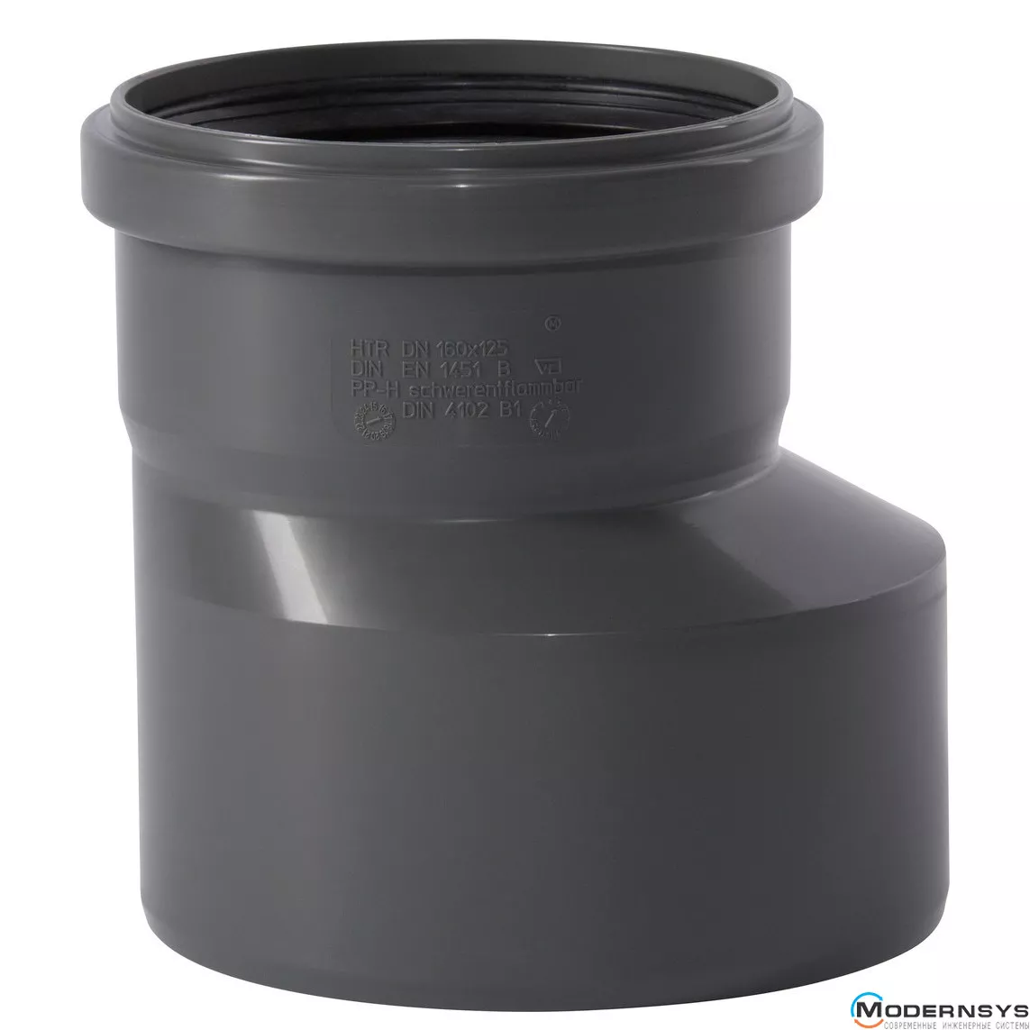 Редукция канализационная Ostendorf HT-Safe 160/125, Вариант: Обычная, Вид канализации: Внутренняя, Тип канализации: Простая, Модификация: 160/125, Исполнение: Для HT-Safe, Цвет: Темно-серый, Диаметр (мм): 160, Материал: Полипропилен PPR, фото Редукция канализационная Ostendorf HT-Safe 160/125