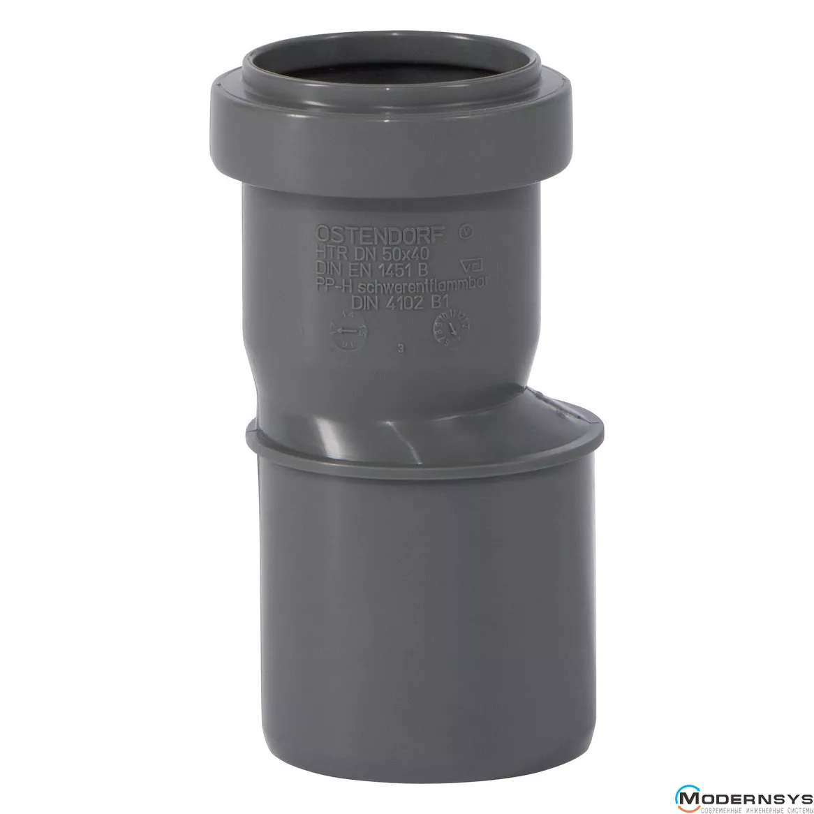 Редукция канализационная Ostendorf HT-Safe 50/40*, Вариант: Короткая, Вид канализации: Внутренняя, Тип канализации: Простая, Модификация: 50/40, Исполнение: Для HT-Safe, Цвет: Темно-серый, Диаметр (мм): 50, Материал: Полипропилен PPR, фото Редукция канализационная Ostendorf HT-Safe 50/40*