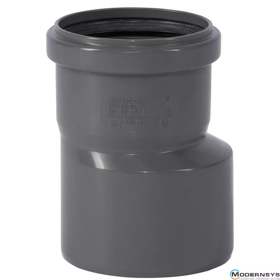 Редукция канализационная Ostendorf HT-Safe внутренняя 110/75, Вариант: Внутренний, Вид канализации: Внутренняя, Тип канализации: Простая, Модификация: 110/75, Исполнение: Для HT-Safe, Цвет: Темно-серый, Диаметр (мм): 100, Материал: Полипропилен PPR, фото Редукция канализационная Ostendorf HT-Safe внутренняя 110/75