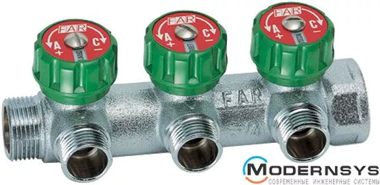 Регулирующий коллектор FAR с 3 отводами 3/4"x1/2" (FK 3822 3412TP)