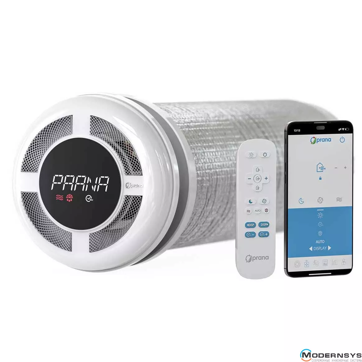 - раздельное управление приливом и вытяжкой. Рекуператор PRANA 150 M2023 позволяет управлять потоками приточного и вытяжного воздуха. Режимы притока и вытяжки можно увидеть в мобильном приложении и на информационной панели со значениями от 1 до 5. Управлять потоками воздуха можно с помощью пульта или мобильного приложения;