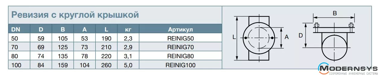 Технические характеристики: Ревизия из чугуна с круглой крышкой SML DN 50мм RSP (РСП) REINIG50