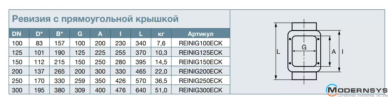 Технические характеристики: Ревизия из чугуна с прямоугольной крышкой SML DN250мм RSP (РСП) REINING250ECK