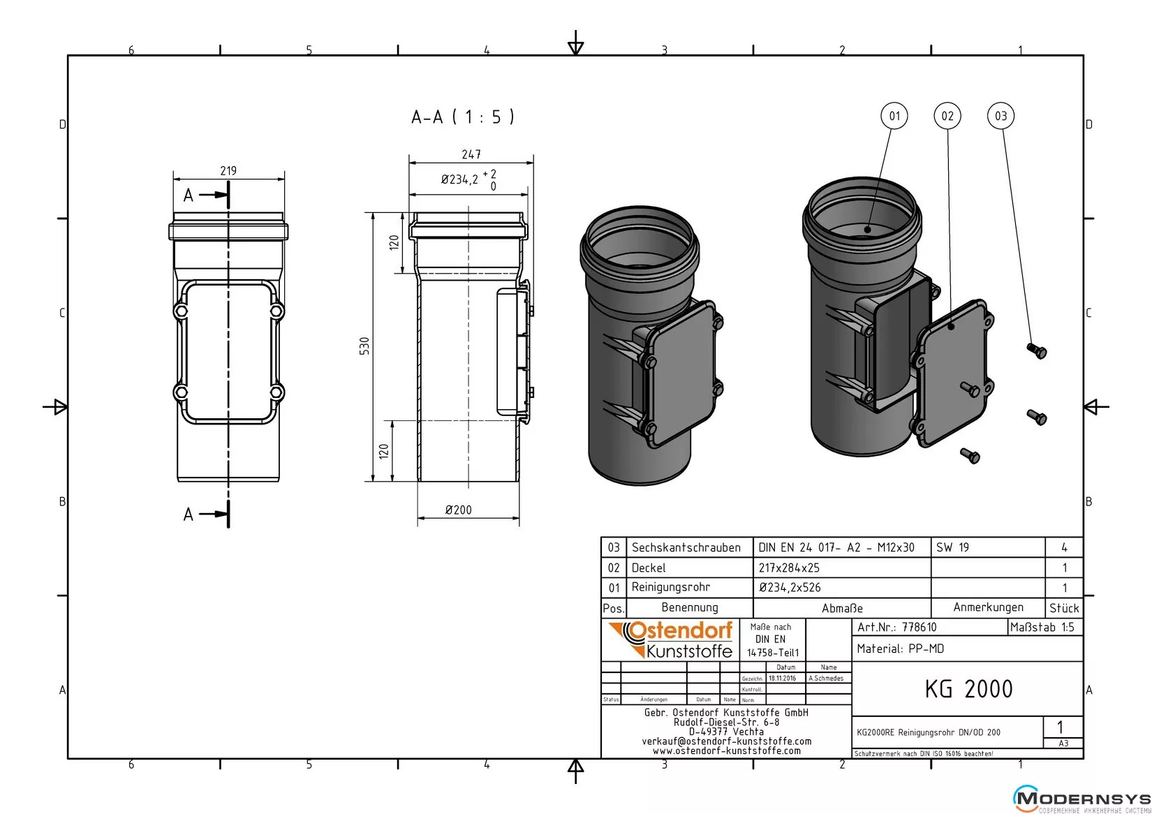 Технические характеристики: Ревизия канализационная Ostendorf (Остендорф) KG2000RE 200 мм
