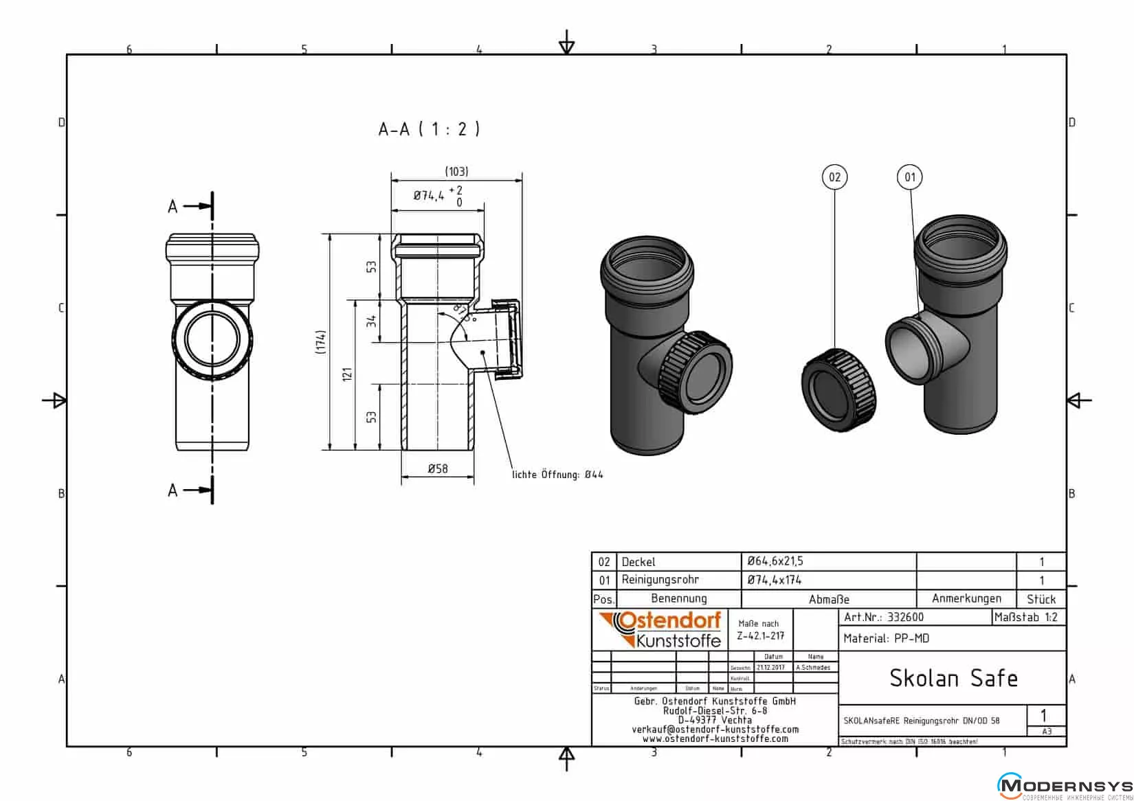 Технические характеристики: Ревизия канализационная Ostendorf (Остендорф) Skolan db 50 (332600)