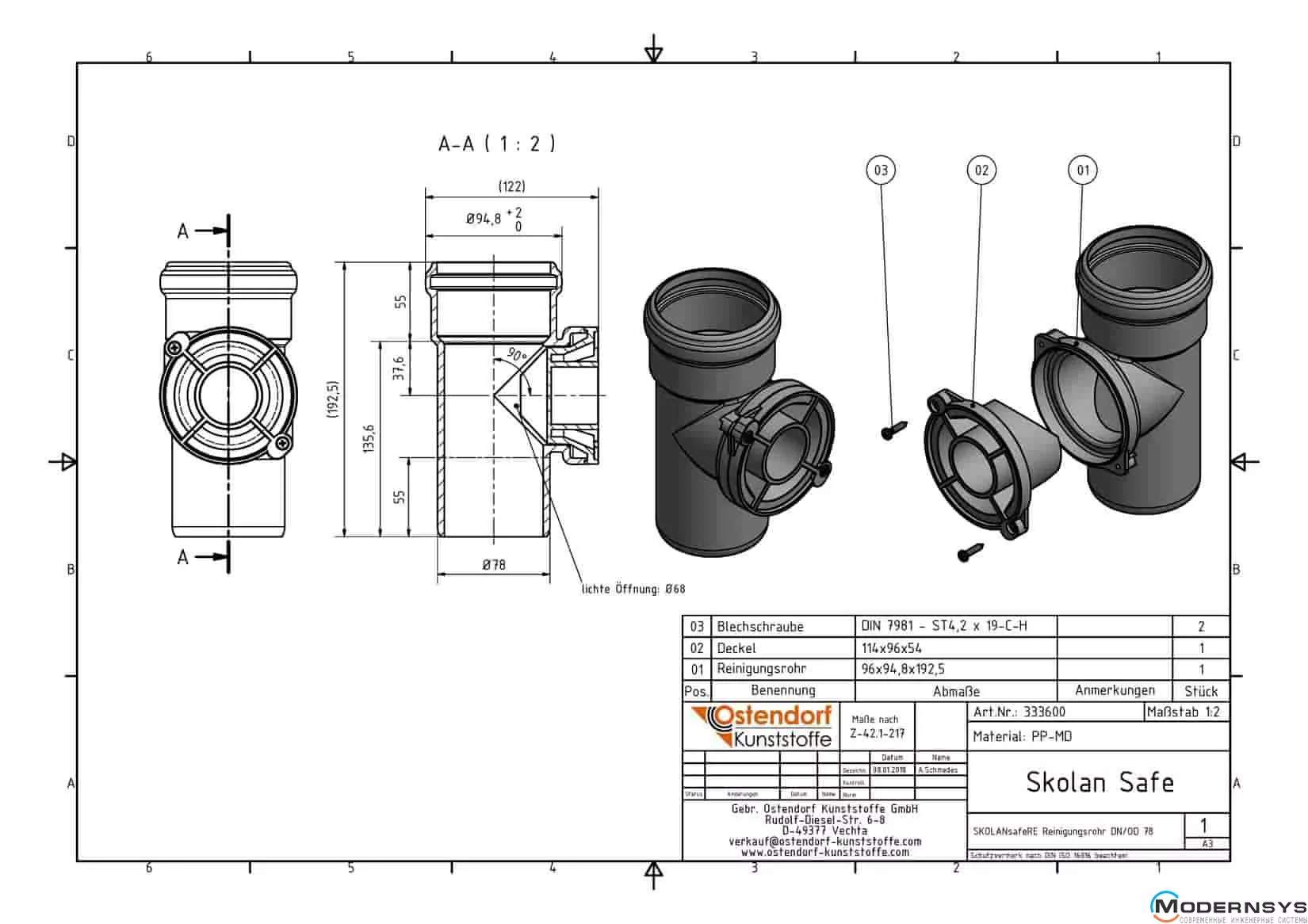 Технические характеристики: Ревизия канализационная Ostendorf (Остендорф) Skolan db 70 (333600)