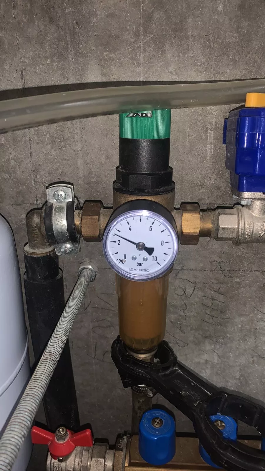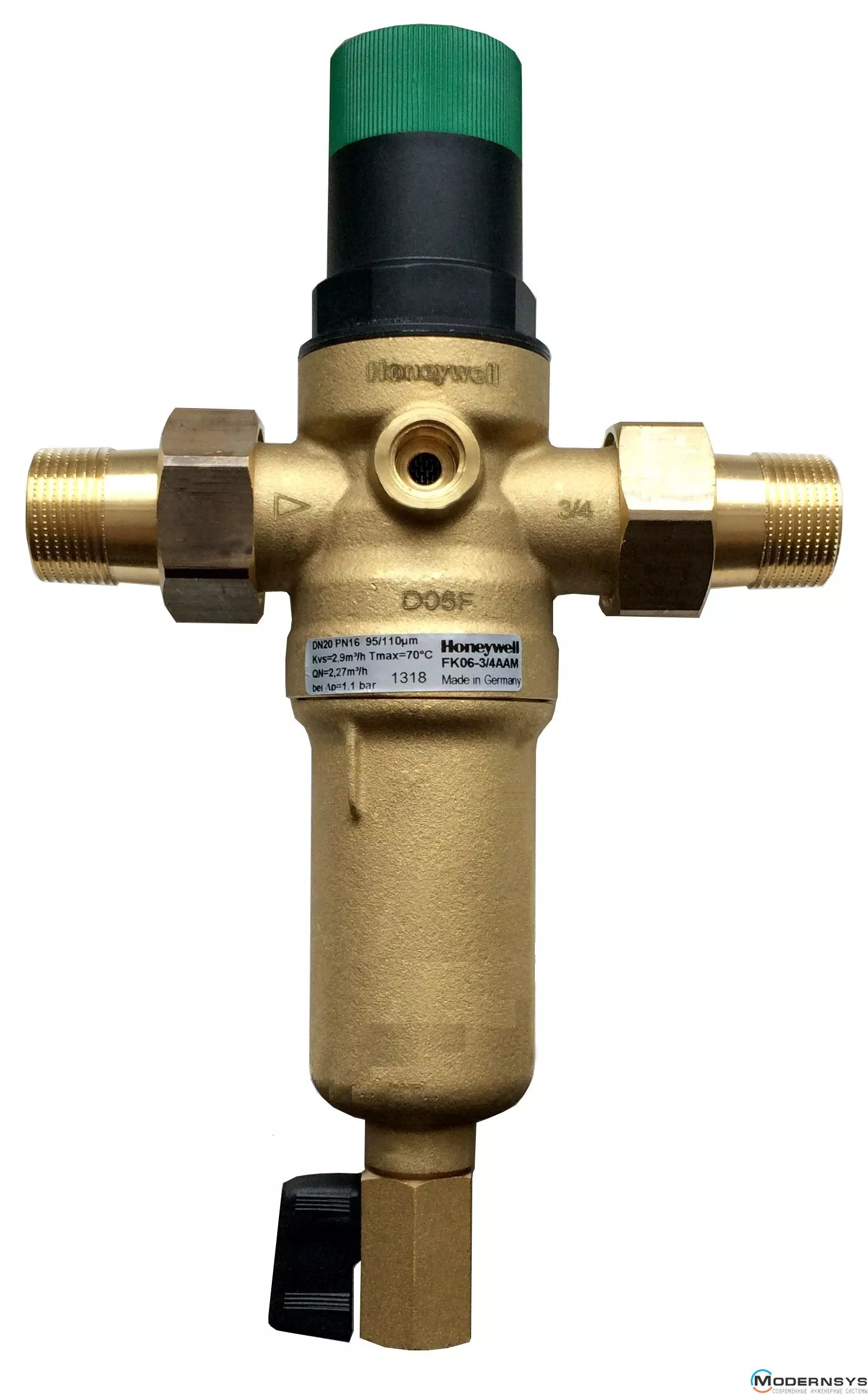 Устройство сочетает в себе промывной фильтр и специальный клапан для понижения выходного давления. Служит для предотвращения попадания частиц песка и ржавчины или других примесей в водопровод. Собранные в колбе фильтра посторонние частицы удаляются путем промывки фильтрующего элемента. Для этого достаточно открыть специальный шаровый кран в нижней части устройства. При этом очищенная вода будет поступать в водопровод и во время промывки элементов фильтра. Интегрированный клапан понижения давления служит для защиты системы подачи воды от избыточного давления, уравновешивая его выходное значение в заданных настройками пределах.