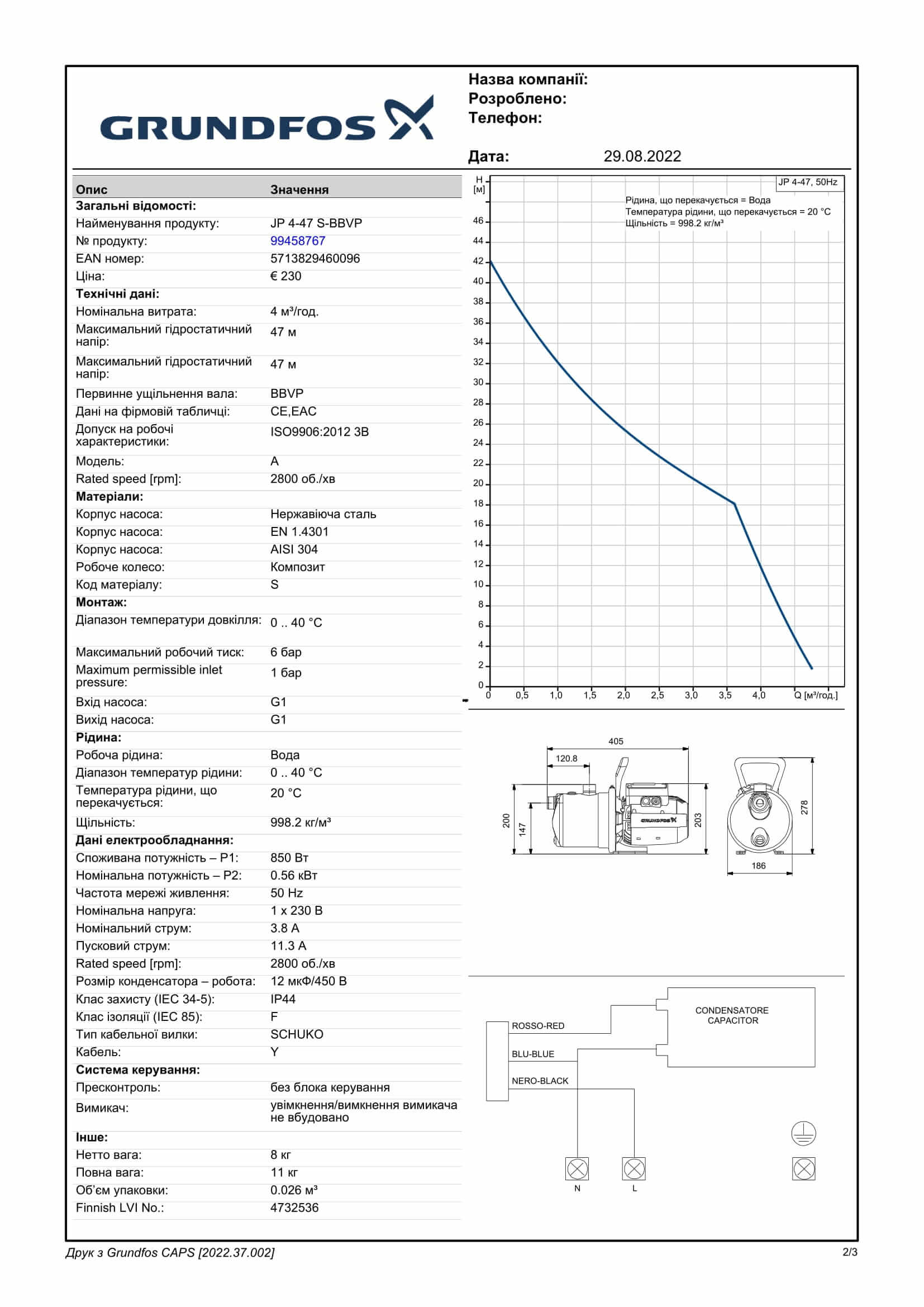 Технические характеристики: Самовсасывающий насос Grundfos (Грундфос) JP 4-47 1x230 1,5м SCHUKO