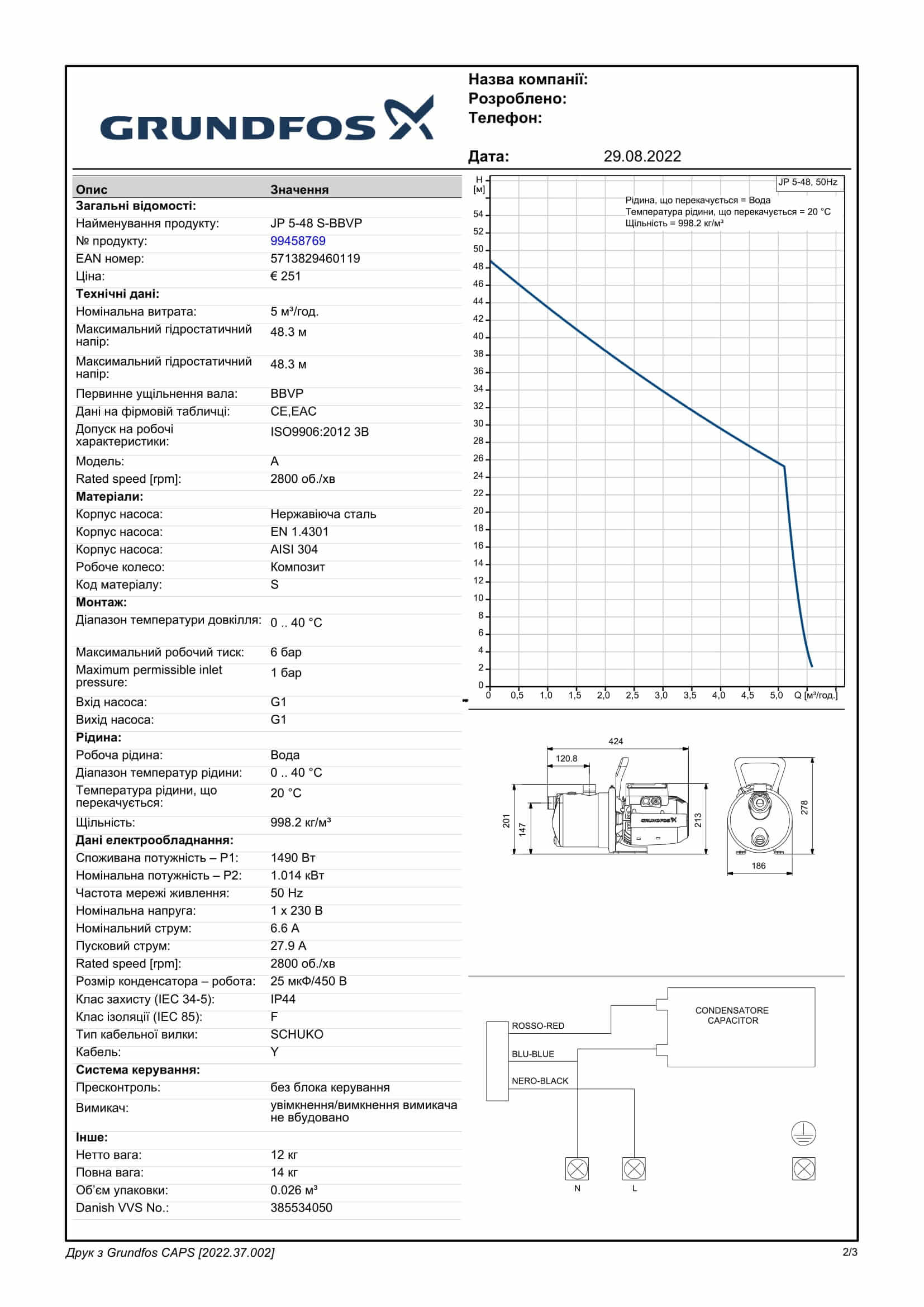 Технические характеристики: Самовсасывающий насос Grundfos (Грундфос) JP 5-48 1x230 1,5м SCHUKO
