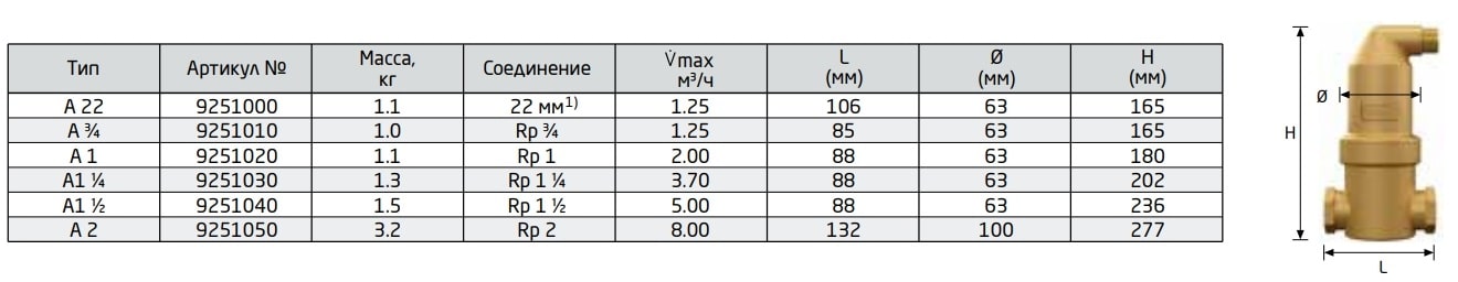 Технические характеристики: Сепаратор воздуха Reflex (Рефлекс) exair A 1 1/2