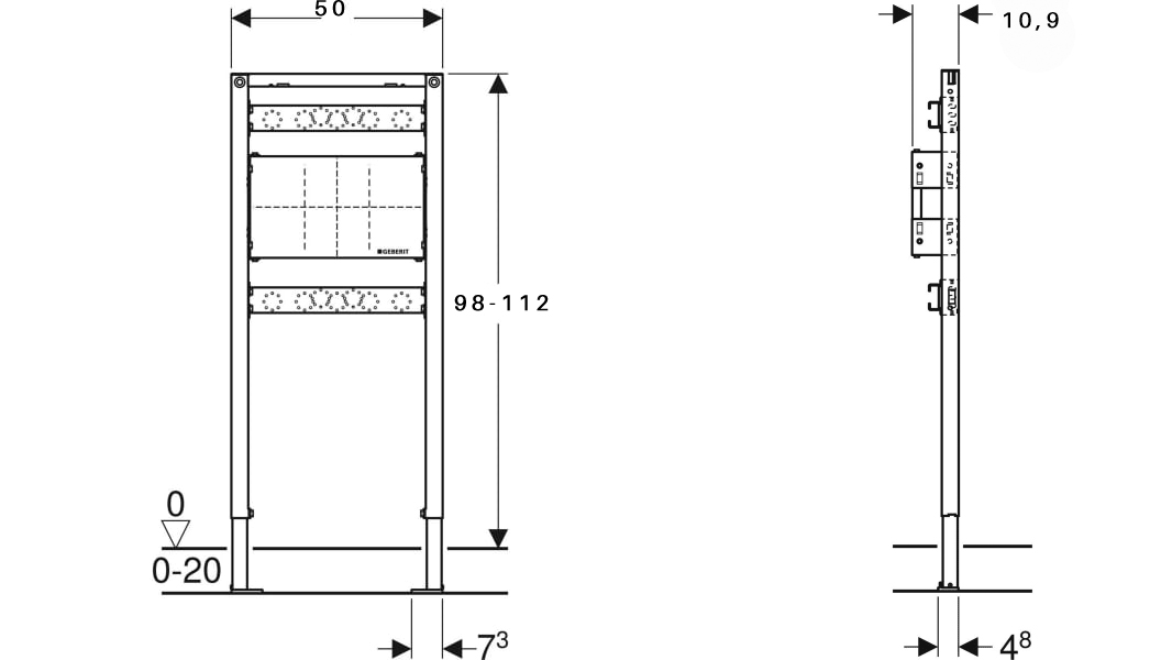 - Глубина опорных площадок подходит для монтажа в U-образные профили UW 50 и UW 75 и в направляющие системы Geberit Duofix