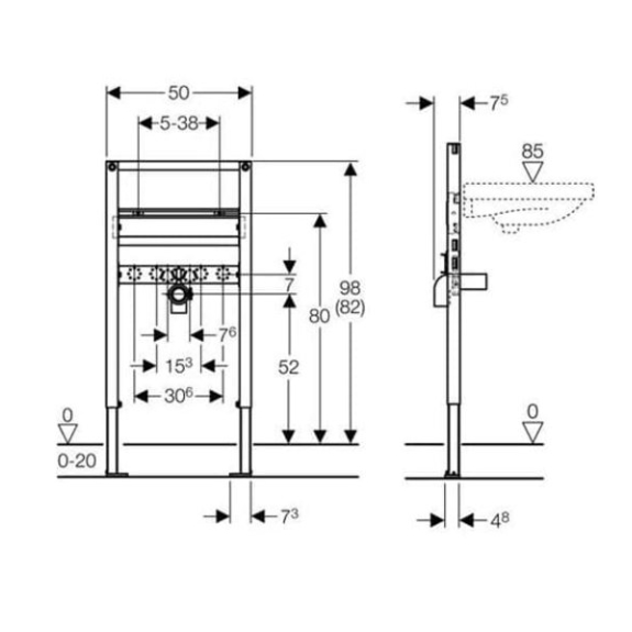 Система инсталляции Geberit Duofix (111.490.00.1) для умывальников, 82–98 см, вертикальный смеситель.
