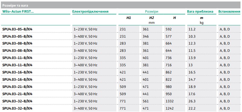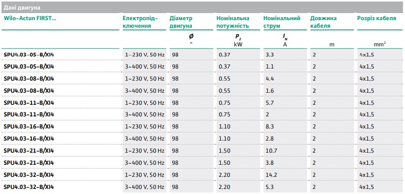 Технические характеристики: Скважинный насос Wilo (Вило) FIRST SPU4.03-11-B/XI4-50-1-230