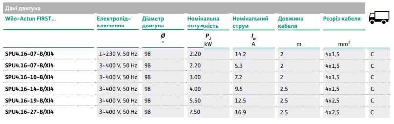Скважинный насос Wilo FIRST SPU4.02-07-B/XI4-50-3-400, Модификация: FIRST SPU4.02-07-B/XI4-50-3-400, Макс. Производительность (куб. м/час): 2, Электропитание: 380 V, фото Скважинный насос Wilo FIRST SPU4.02-07-B/XI4-50-3-400