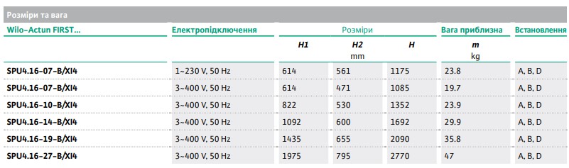 Технические характеристики: Скважинный насос Wilo (Вило) FIRST SPU4.16-10-B/XI4-50-3-400