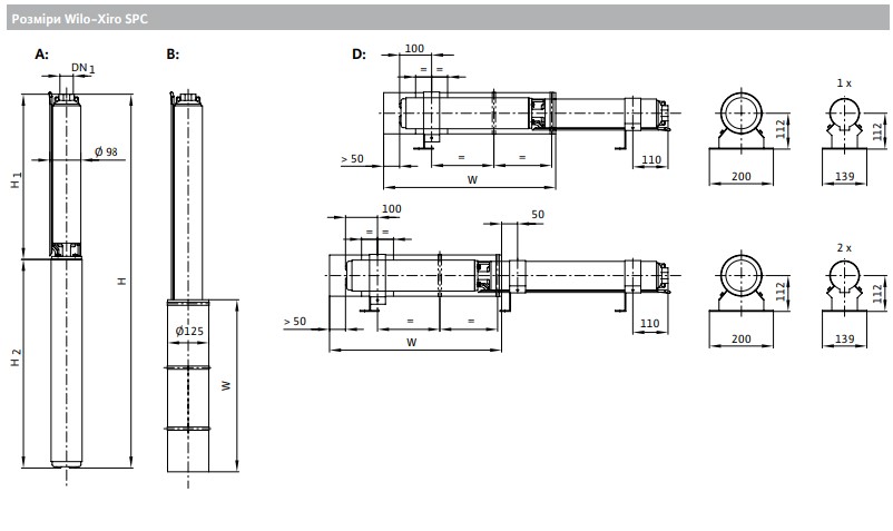 Полностью затапливаемый погружной многоступенчатый насос с радиальными или полуаксиальными рабочими колесами в исполнении с кожухом для вертикального или горизонтального монтажа со встроенным обратным клапаном. Коррозионностойкий однофазный или трехфазный электродвигатель прямого пуска с масляным наполнением, оснащенный противопесочной защитой и торцевым уплотнением, а также самосмазывающимися подшипниками. Электродвигатель охлаждается перекачиваемой жидкостью. Поэтому этот агрегат всегда должен эксплуатироваться в погруженном состоянии. При горизонтальной установке требуется охлаждающий кожух. Для перекачивания воды из скважин с максимальной глубиной погружения 200 м и максимальным содержанием песка 50 г/м³.