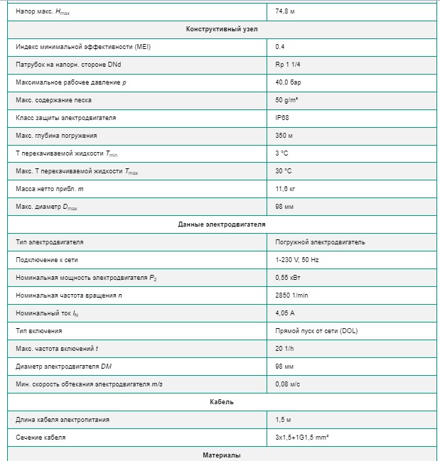 Технические характеристики: Скважинный насос Wilo (Вило) TWI4.01-14-EM-D
