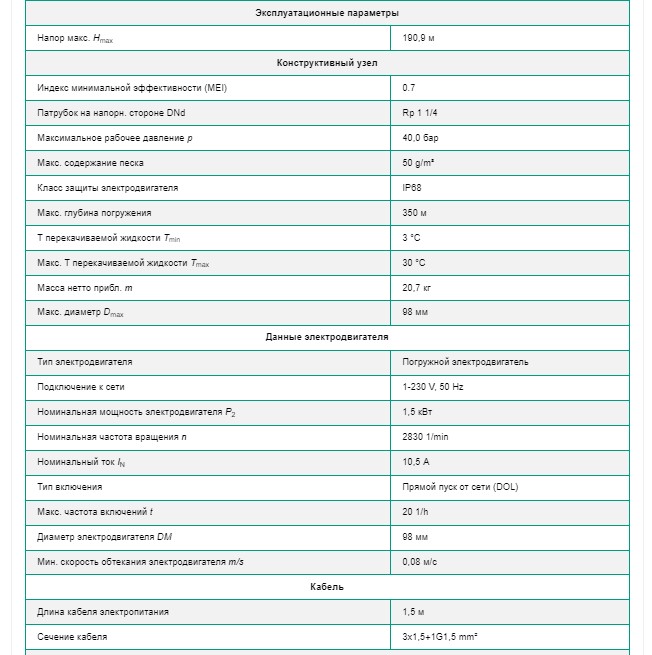 Технические характеристики: Скважинный насос Wilo (Вило) TWI4.02-33-EM-D