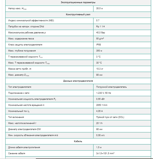 Технические характеристики: Скважинный насос Wilo (Вило) TWI4.03-06-EM-D