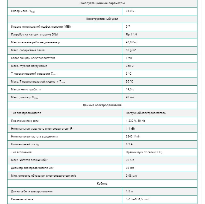 Технические характеристики: Скважинный насос Wilo (Вило) TWI4.03-15-EM-D