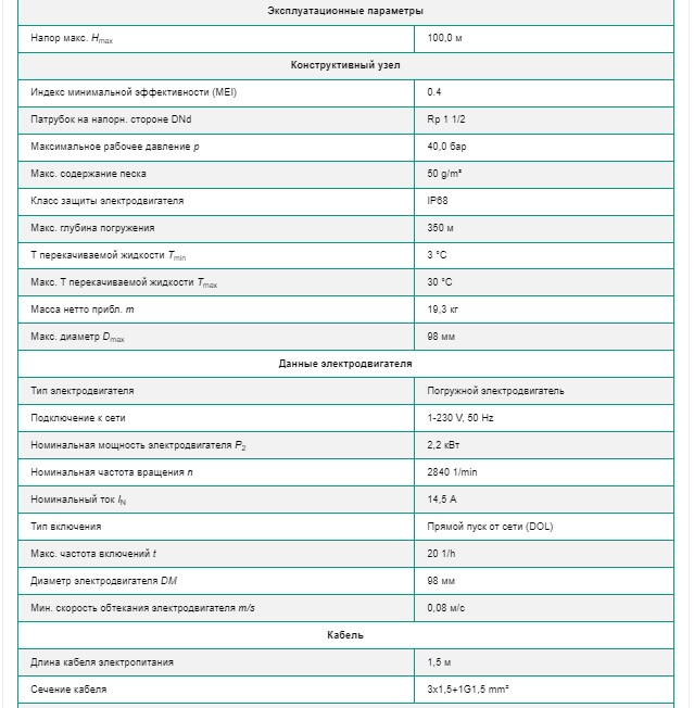 Технические характеристики: Скважинный насос Wilo (Вило) TWI4.05-17-EM-D