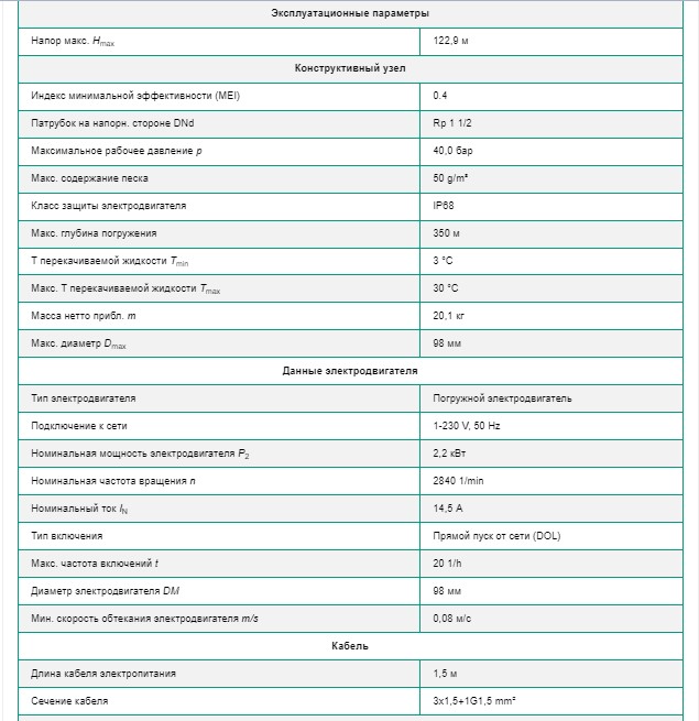 Технические характеристики: Скважинный насос Wilo (Вило) TWI4.05-21-EM-D