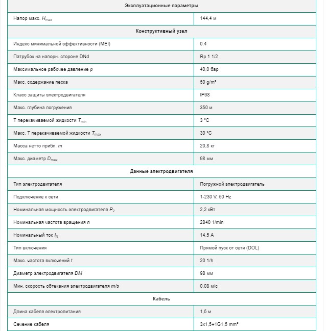 Технические характеристики: Скважинный насос Wilo (Вило) TWI4.05-25-EM-D
