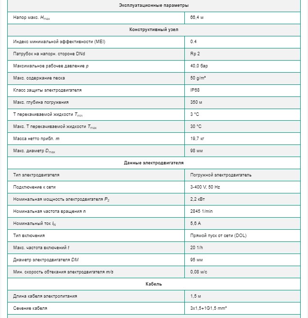 Технические характеристики: Скважинный насос Wilo (Вило) TWI4.09-12-DM-D