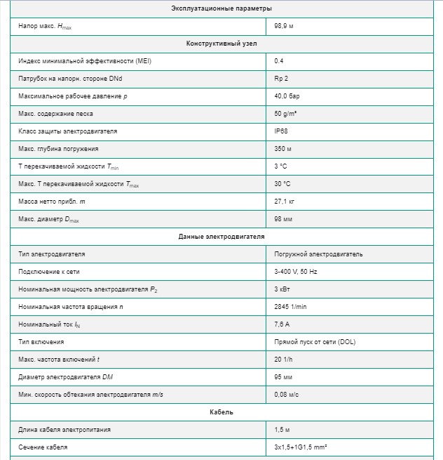 Технические характеристики: Скважинный насос Wilo (Вило) TWI4.09-18-DM-D
