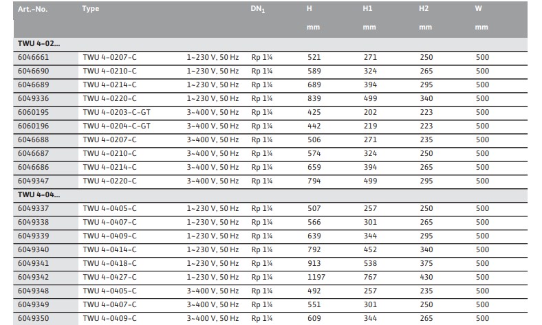 Технические характеристики: Скважинный насос Wilo (Вило) TWU4-0418-EM-C