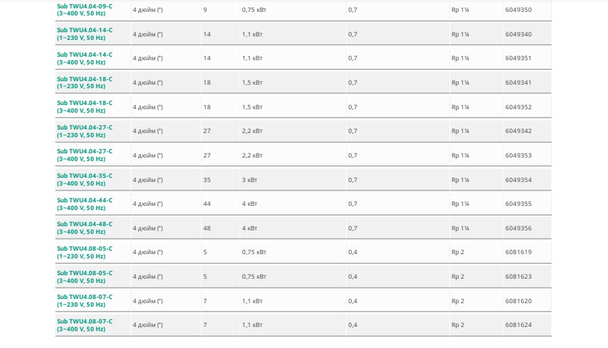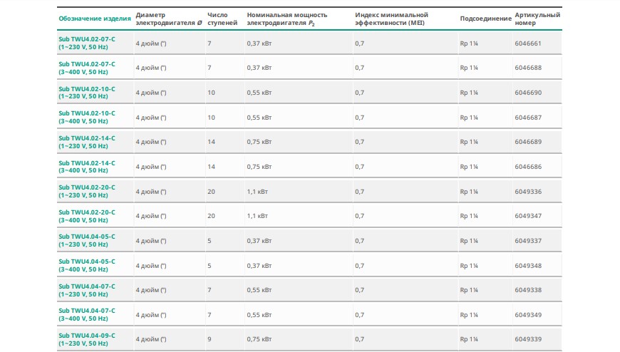 Технические характеристики: Скважинный насос Wilo (Вило) TWU4.08-07-EM-C
